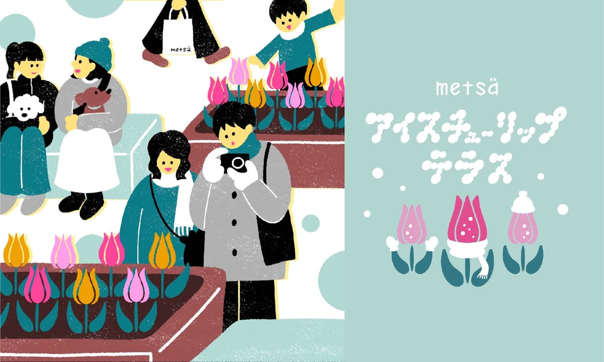 また、豊かな自然に包まれた湖畔の北欧ライフスタイル体験施設「メッツァビレッジ」では、2025年1月25日より、約5,000株のチューリップが彩る「メッツァ アイスチューリップテラス」が期間限定オープン。