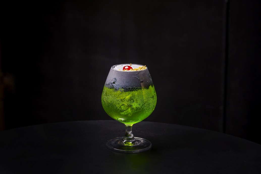 「Devil Melonball」は、メロンと黒いホイップクリームが織りなす、妖しげなコントラストが印象的な大人のメロンソーダ。