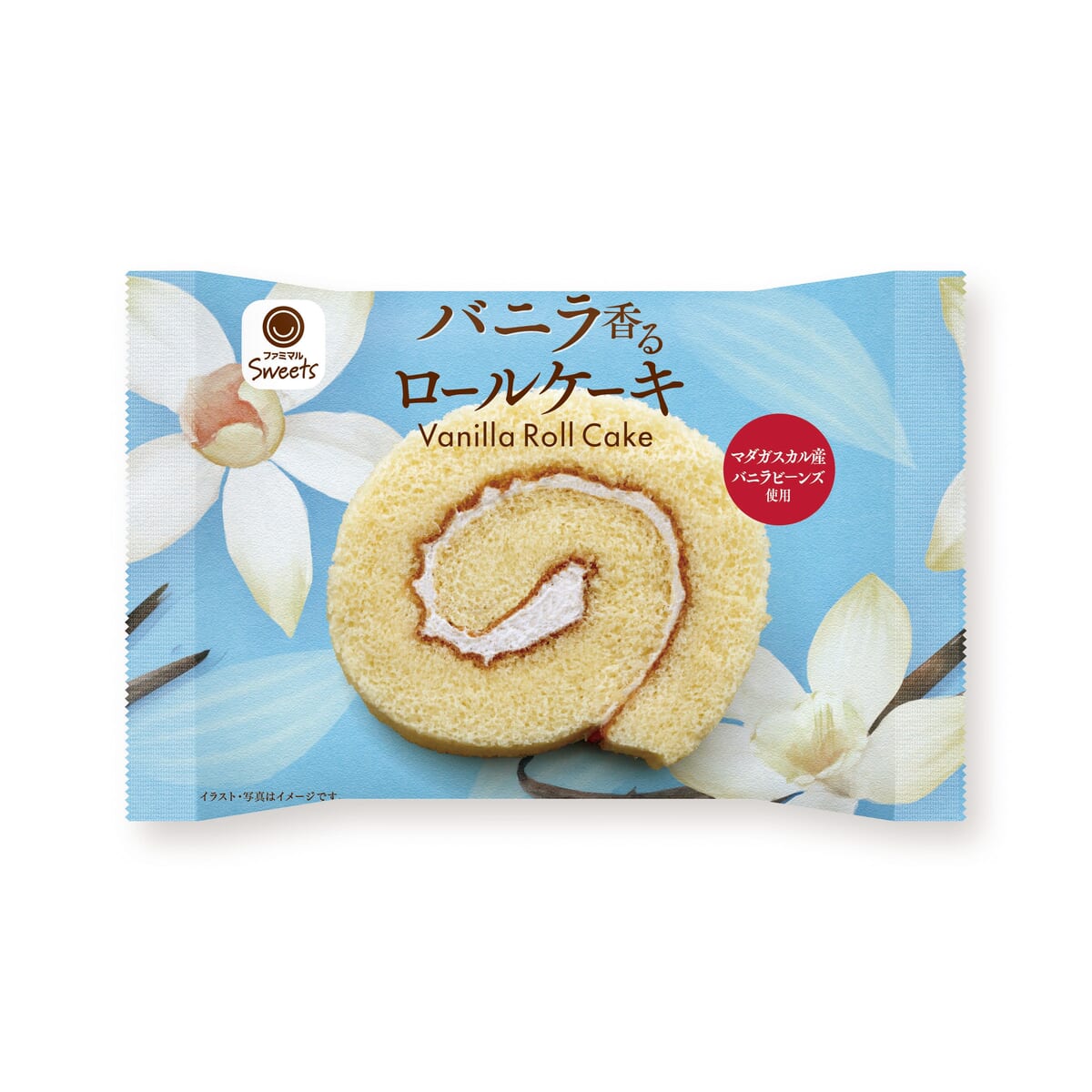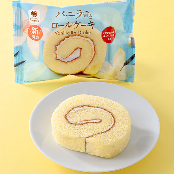 バニラ風味の生地でマダガスカル産バニラシード入りのミルク風味クリームを包んだ、バニラ香るロールケーキです。