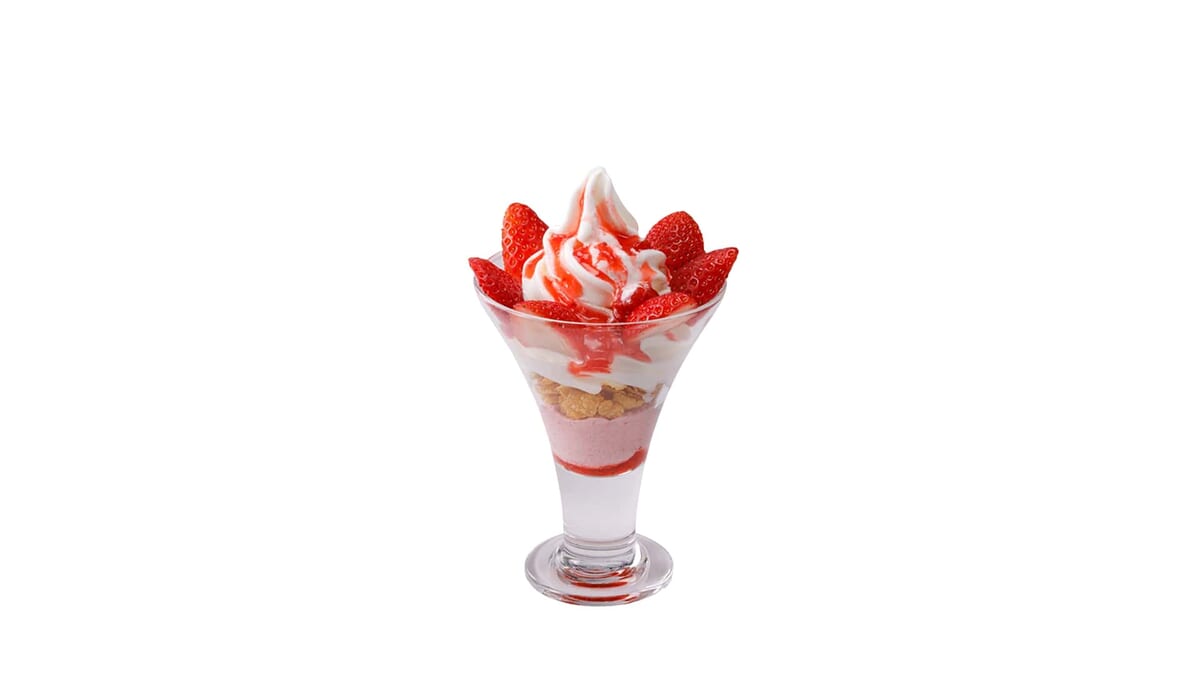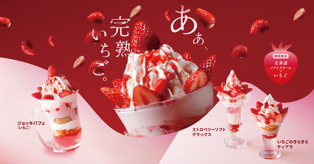 おなじみのデザート「ストロベリーソフト」に旬の国産完熟いちごをトッピングした「ストロベリーソフトデラックス」