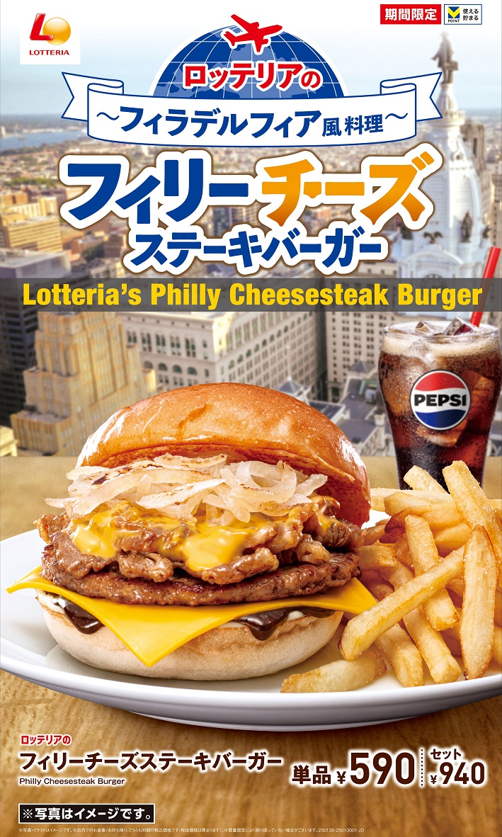 ロッテリアが、アメリカ・ペンシルベニア州フィラデルフィア発祥の人気サンドイッチ“フィリーチーズステーキ”の味わいを、バーガーで気軽に楽しめる「ロッテリアのフィリーチーズステーキバーガーフェア」を開催。