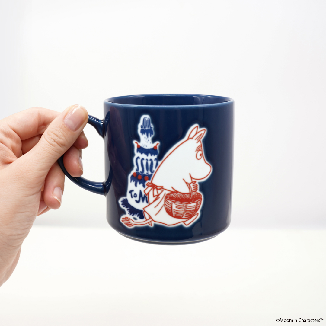 ネイビーカラーに落ちついた赤で描かれた「リトルミイ」&「ムーミンママ」が大人かわいいマグカップ!