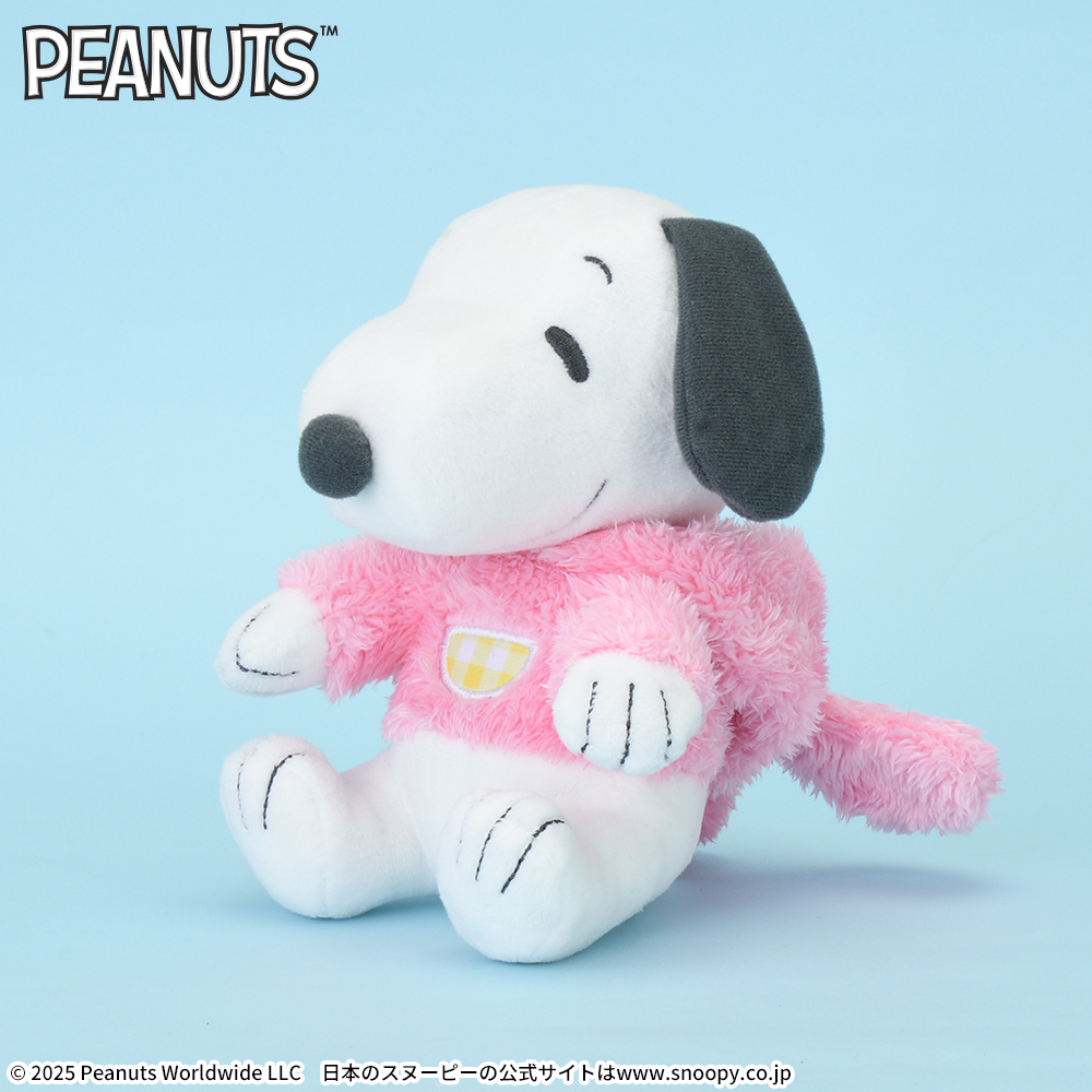 春を感じるカラーリングの「スヌーピー」のぬいぐるみ。
