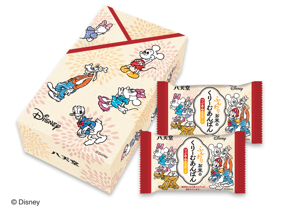 昭和8年創業の老舗和菓子店「八天堂」から、ディズニーデザインの「ふんわりお米のくりーむあんぱん つぶあんカスタード2個入」が登場!