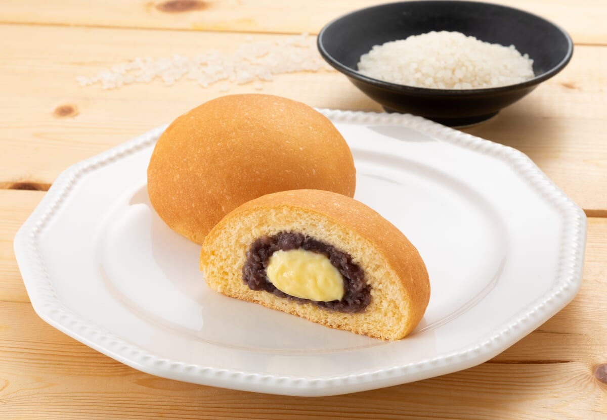 ふんわりお米のくりーむあんぱんに使用されているのは、つぶあんとカスタード。
