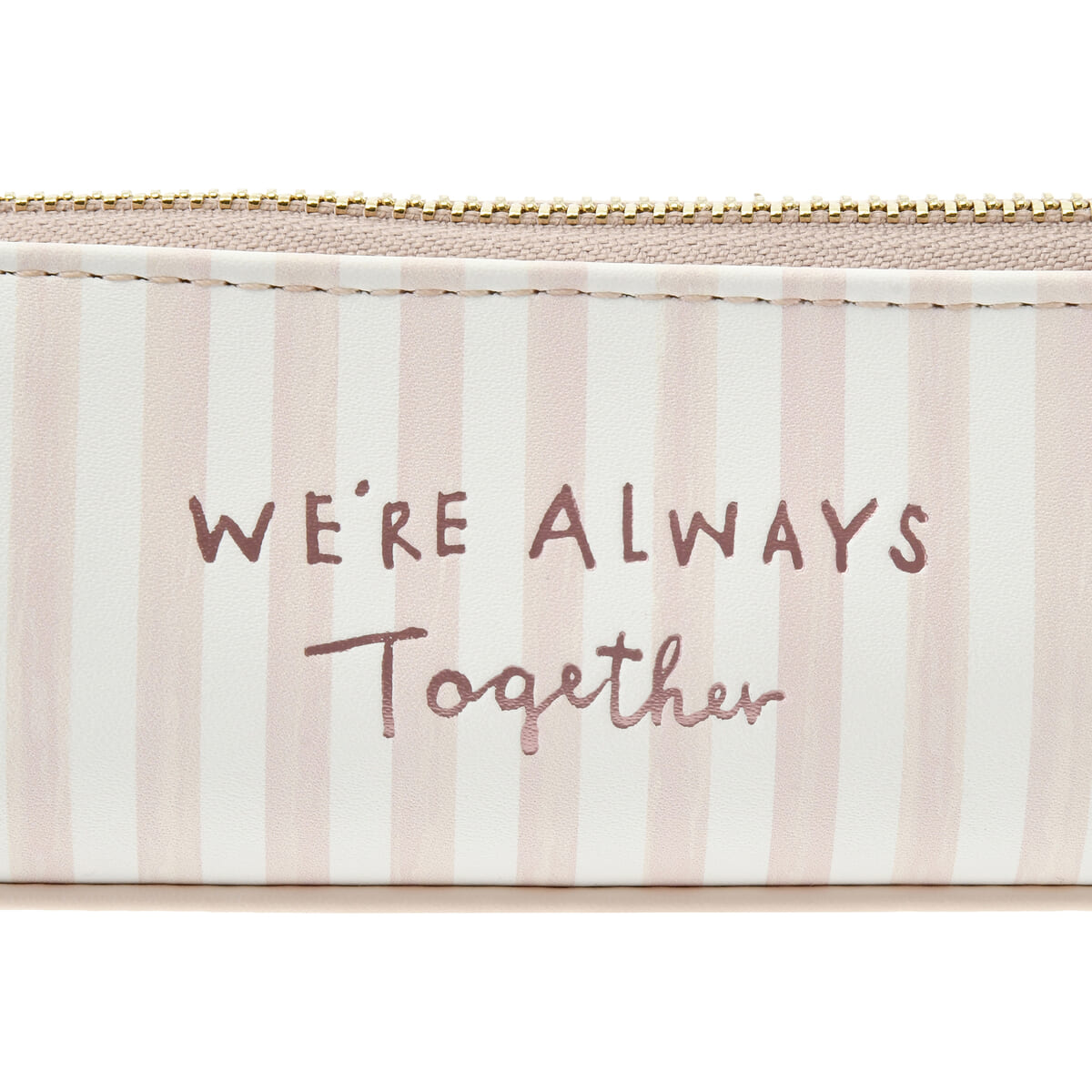 子ネコの甘くてかわいい雰囲気に、ストライプ柄やファスナー引手の水色がスタイリッシュさをプラスしてくれるステーショナリーです。