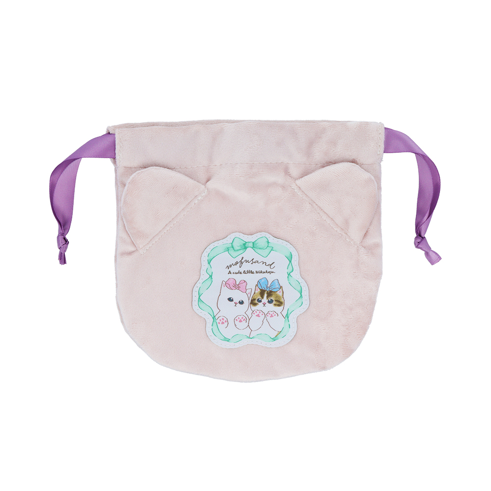 高級感のあるベロア生地を使用した、猫耳付きの巾着。
