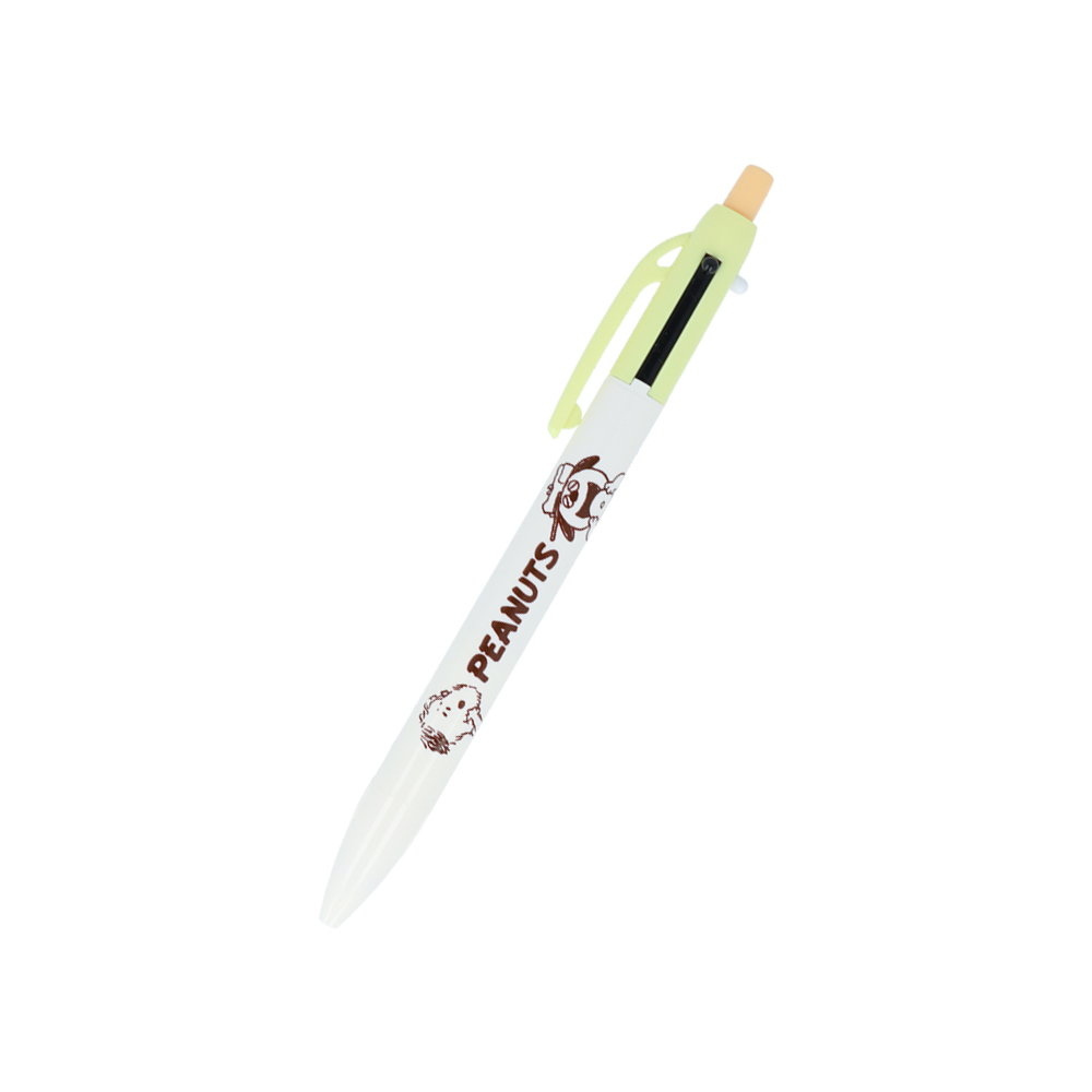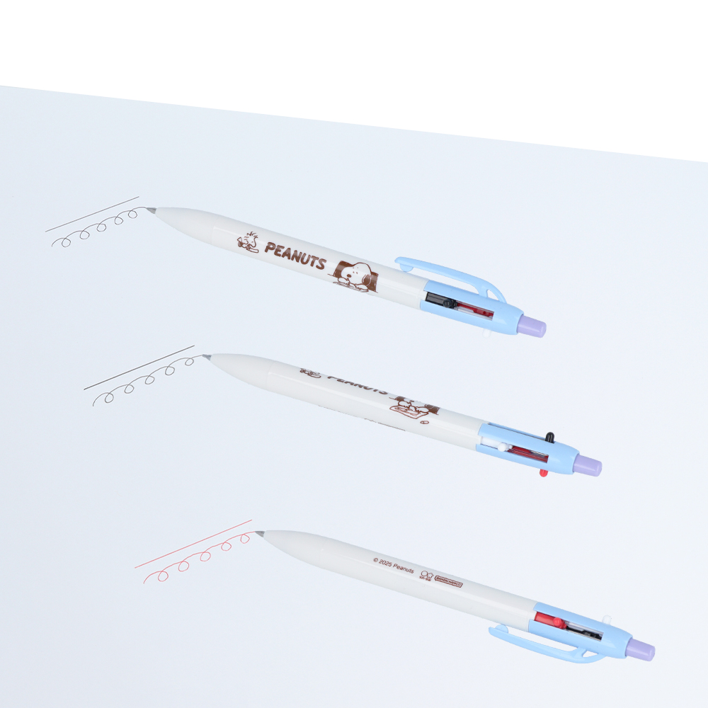 シャープペンと赤と黒ボールペンが1つになった、人気の多機能筆記が「スヌーピー」デザインで登場。
