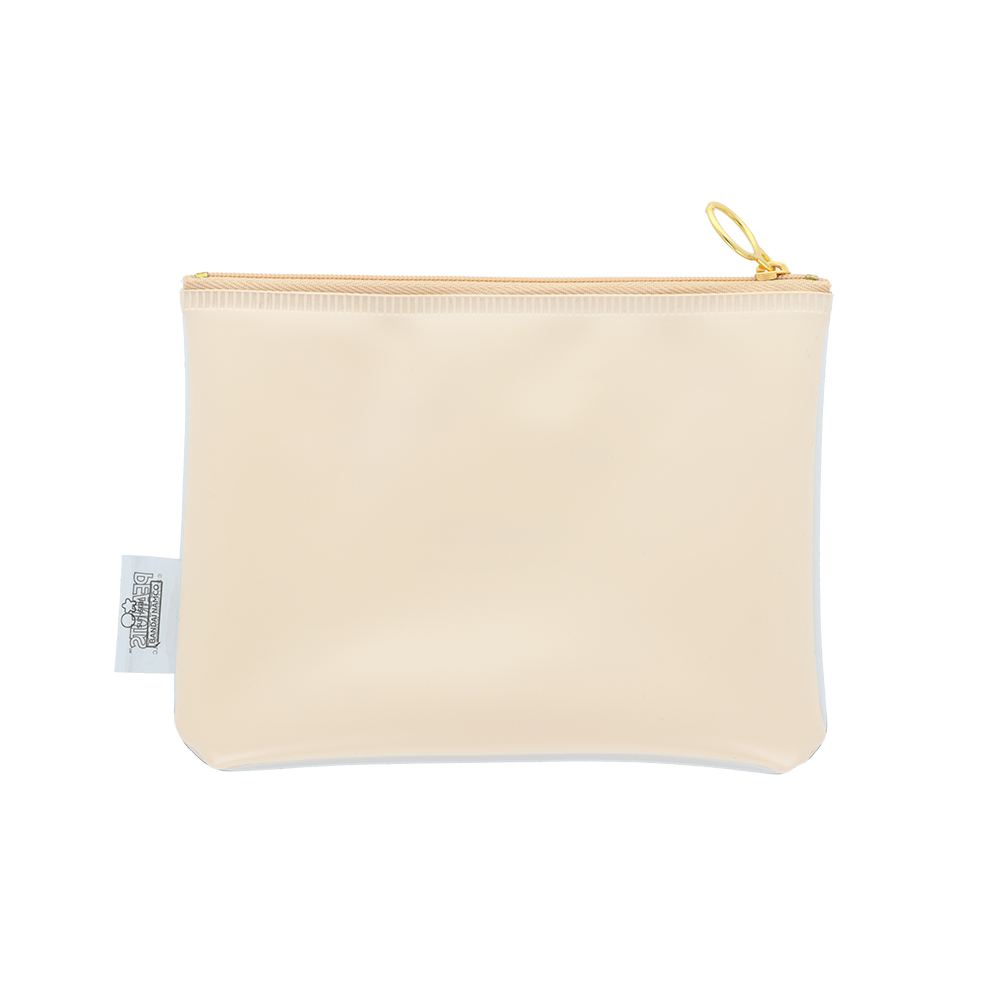 フロント面にクリア素材が使用された、大きめサイズのポーチ。