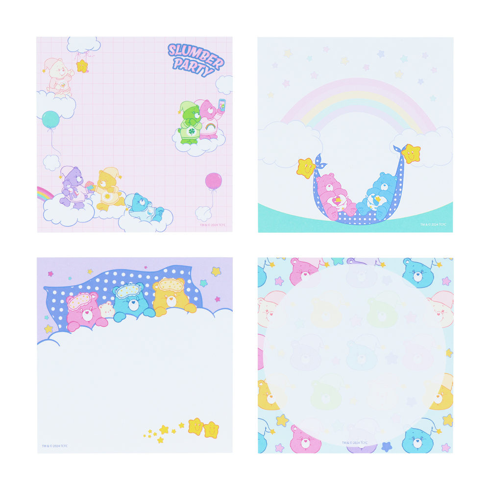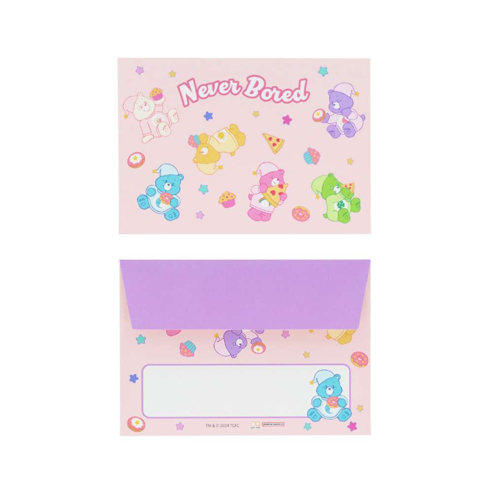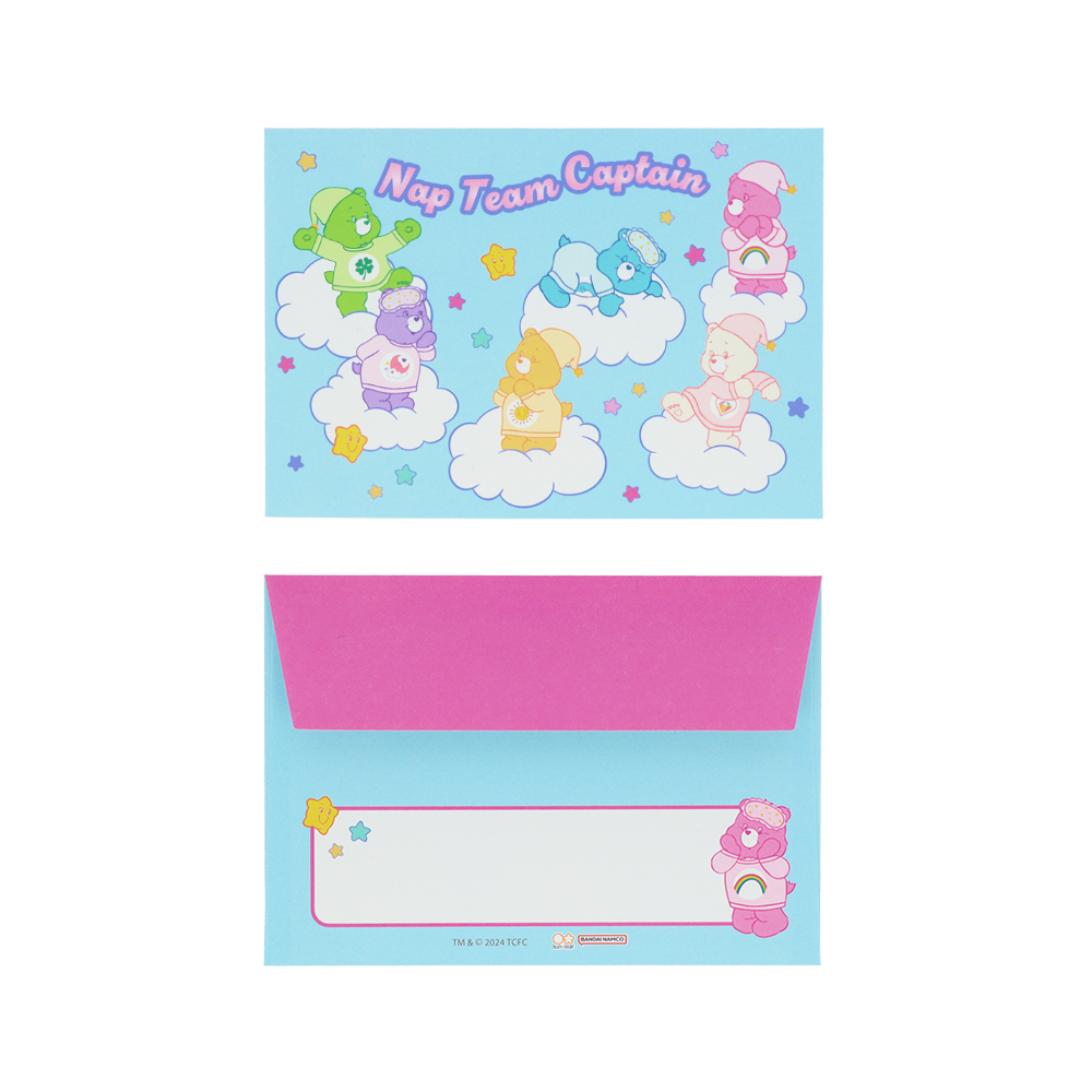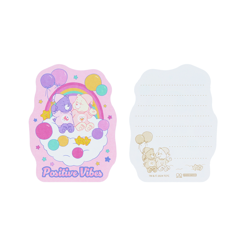 パジャマパーティーを楽しむ「ケアベア」たちのダイカットミニレターセット。