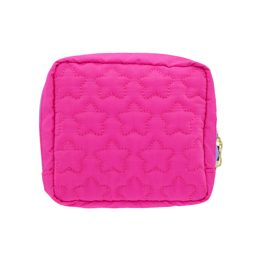 明るいピンクの生地に星型のキルティングが目を引くデザインです。