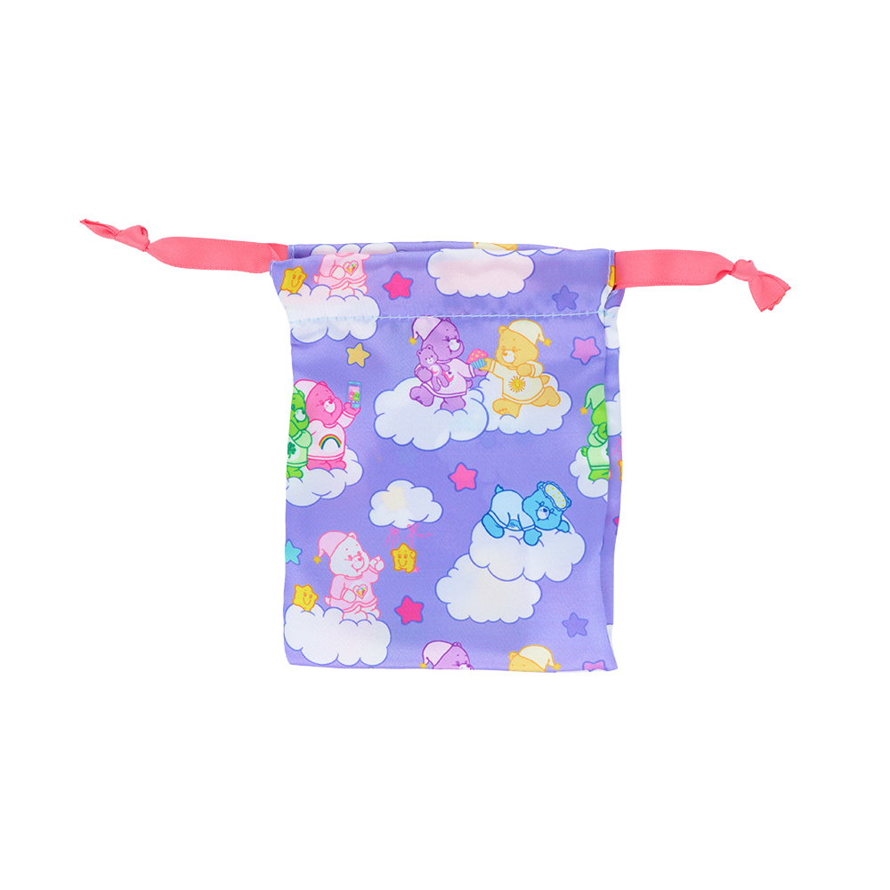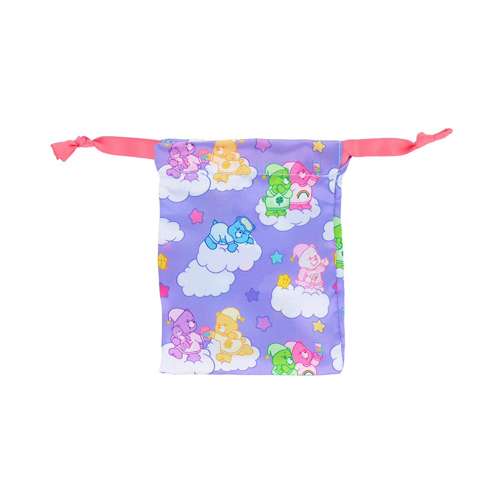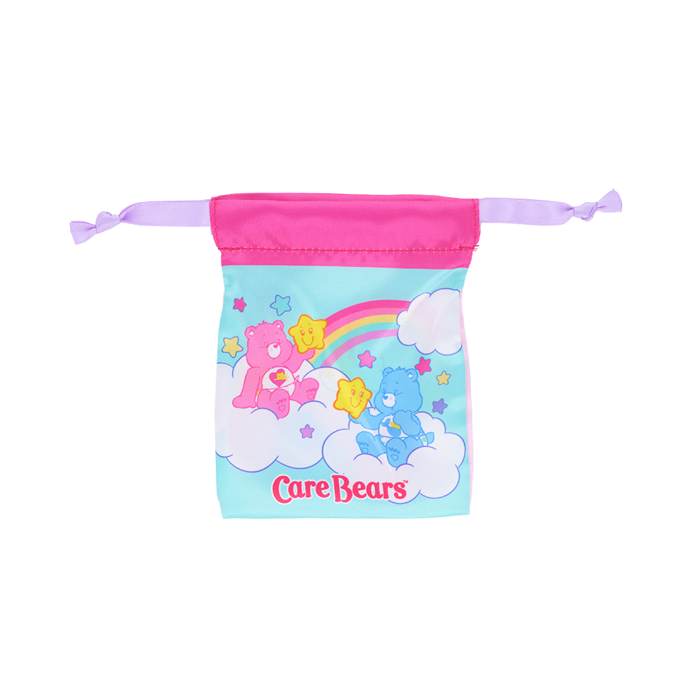 雲の上に寝そべる「ケアベア」のキルティングポーチ。