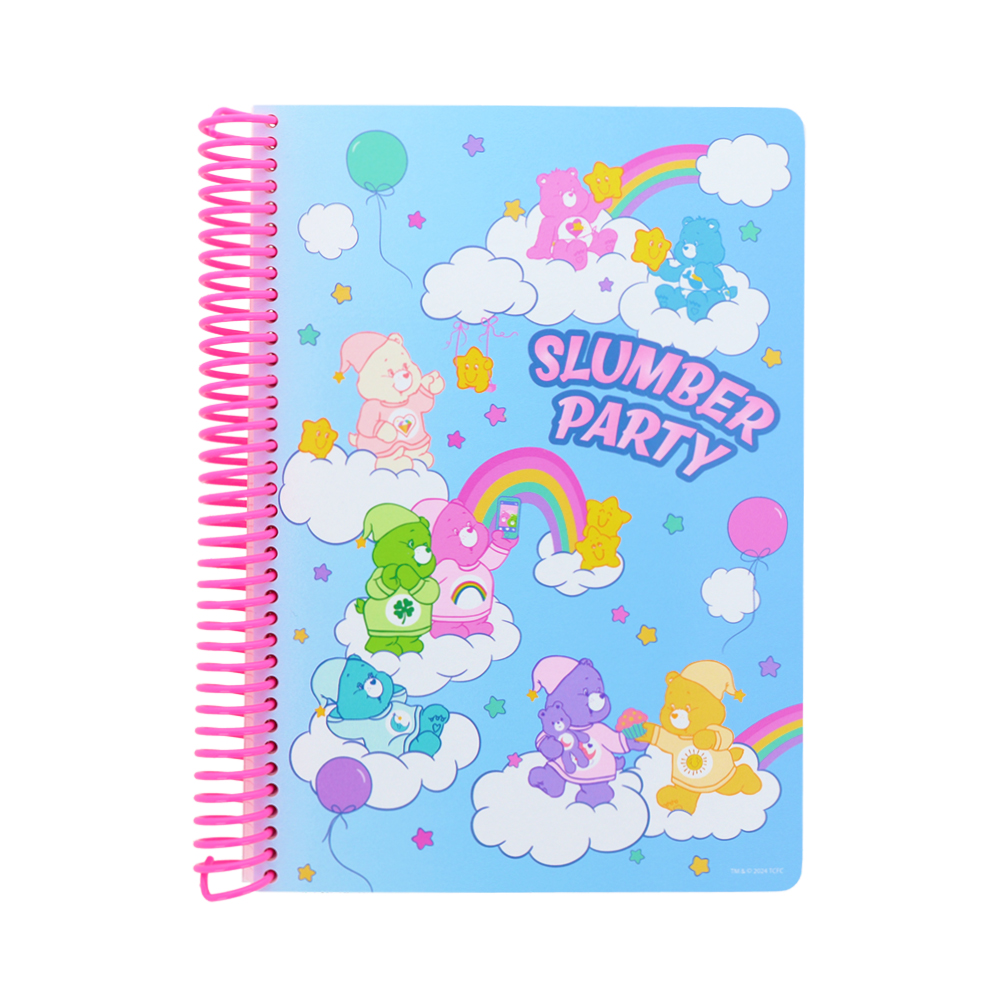 マス目の入ったノート本文にも、パジャマパーティーを楽しむ「ケアベア」たちがいるデザインです☆