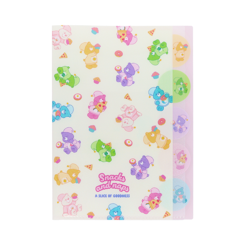 おやつを手にした「ケアベア」が並ぶ、ダイカットデザインの仕切りもポイントです☆