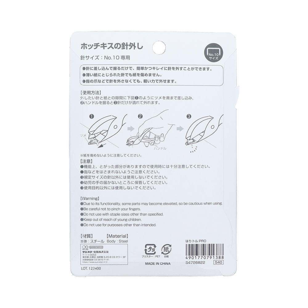 針と紙の間に差し込み、ハンドルを握るだけでホッチキスの針を楽に外せる便利グッズ「はりトルPRO」が、サンスター文具から発売。