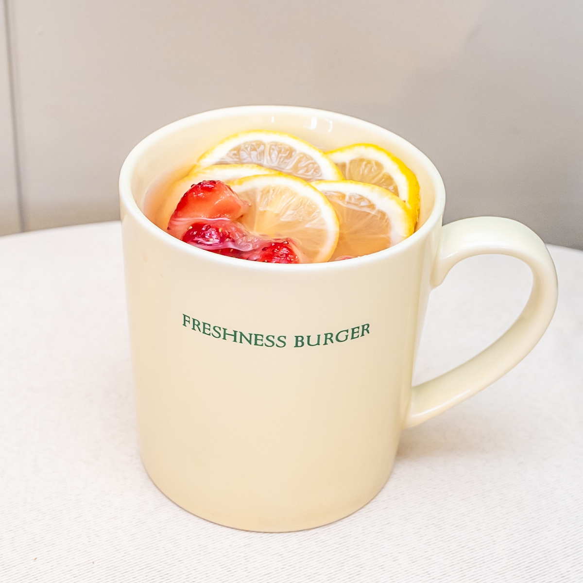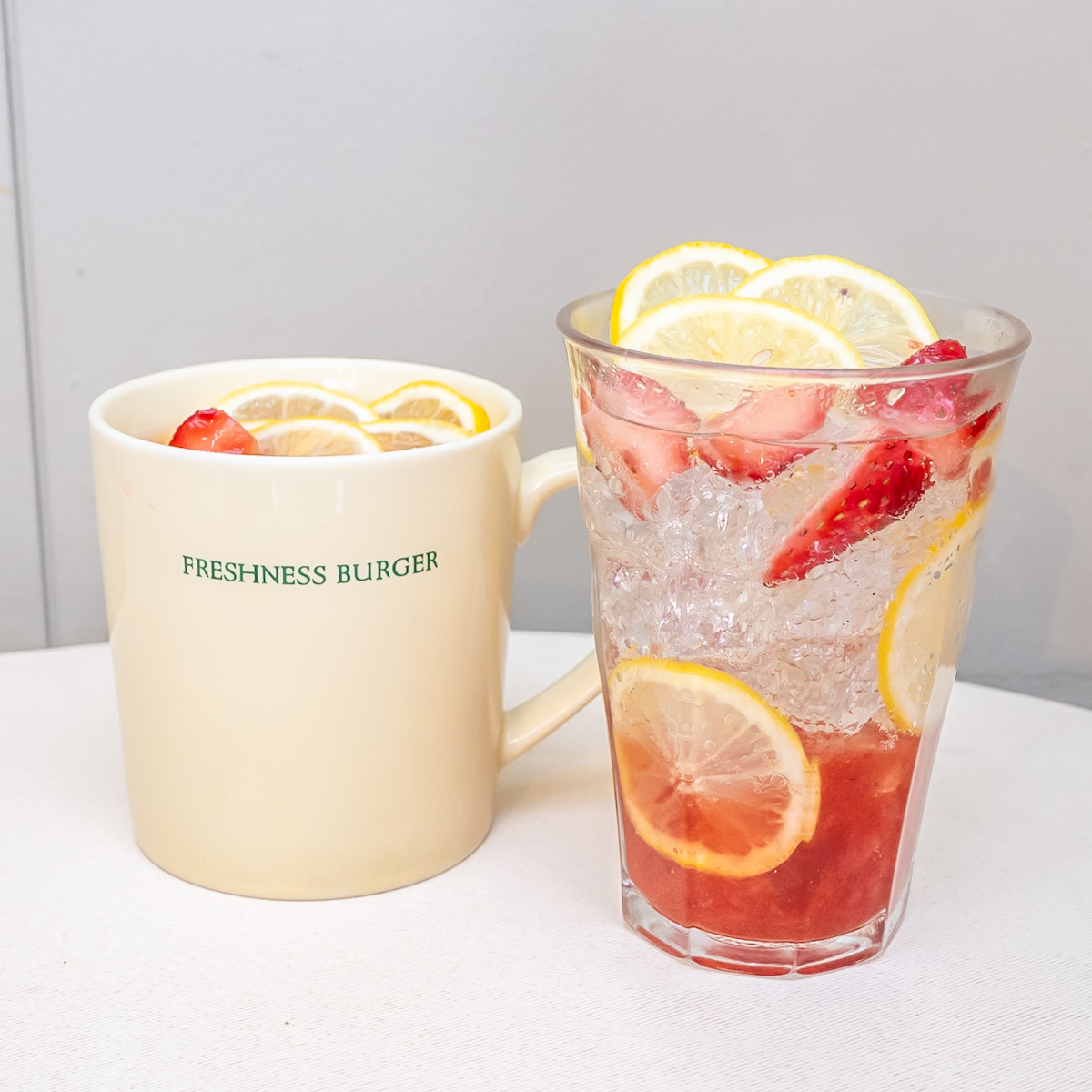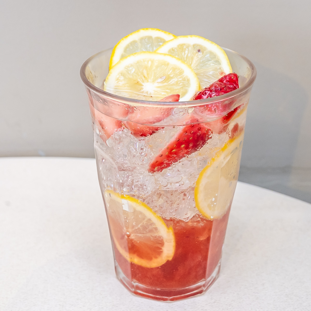 レモンの程良いほろ苦さと、いちごの甘みが際立ち、かわいいだけではない、大人なレモネードに仕上げられています。