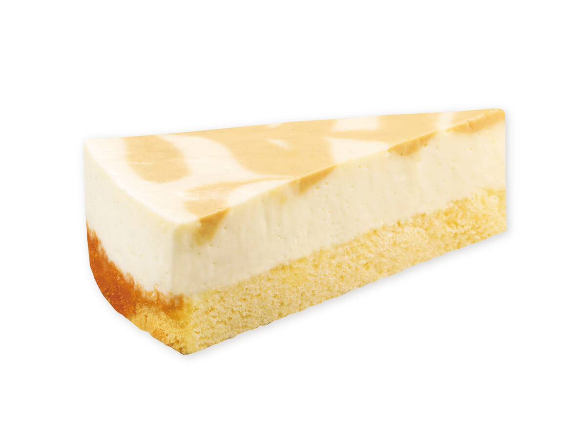 北海道生キャラメルソースを使用した、バニラ風味のプリンケーキ。