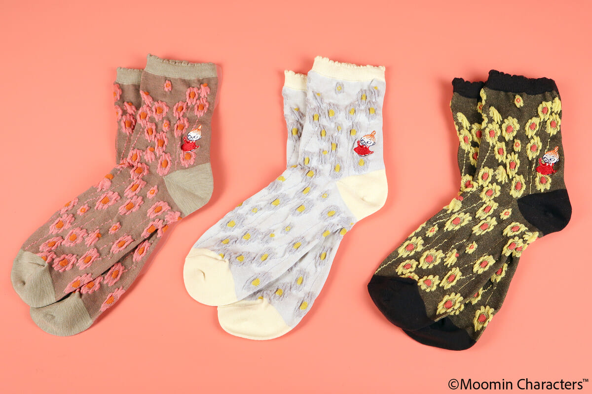 「リトルミイ」とお花のデザインをあしらった、足元をおしゃれに彩るロークルー丈ソックス。