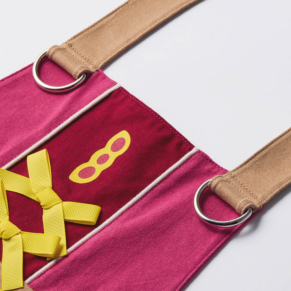 「ヨモギ・クリン・マメコになれるコスチューム風エプロン」は、各キャラクターのコスチュームの配色やデザインを忠実に再現し、リボンや金属風の付属品など立体的な装飾を加えた仕様です。