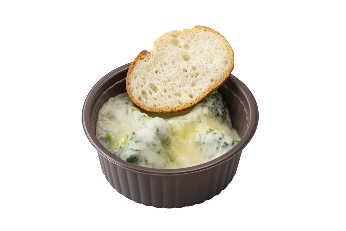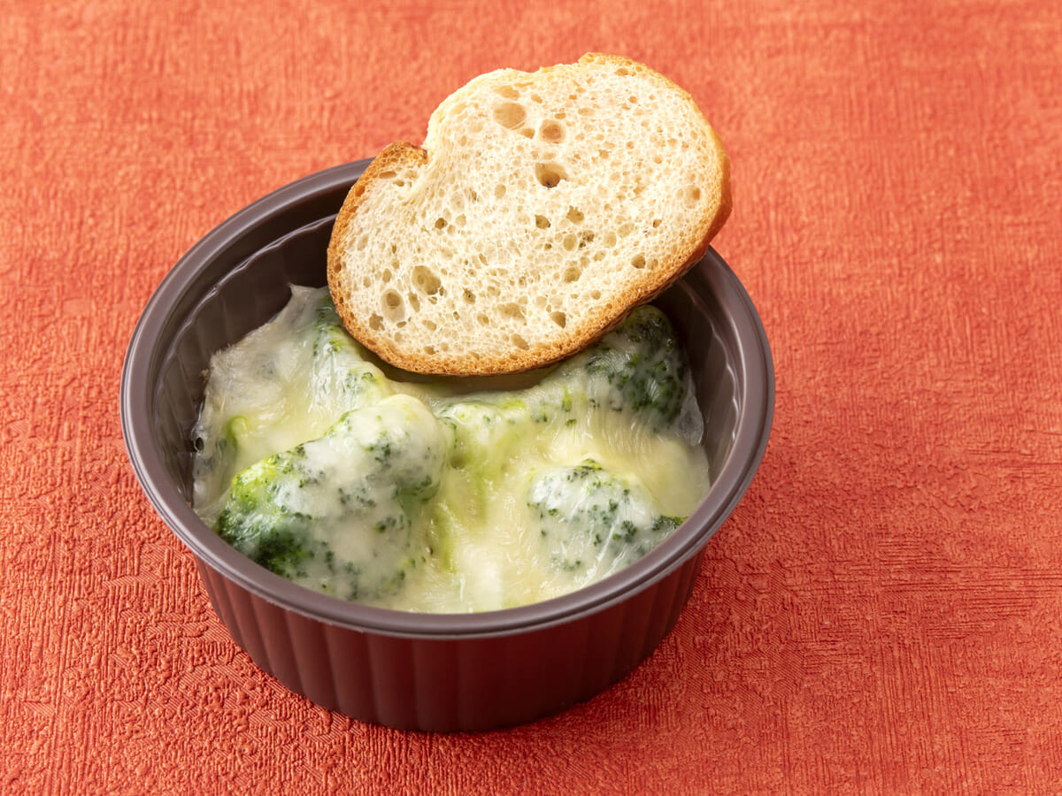 「ブロッコリーとモントレー・ジャック」はブロッコリーに、白ワインとアンチョビを加えたチーズソースと モントレー・ジャックチーズを乗せて焼き上げています。