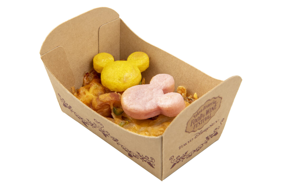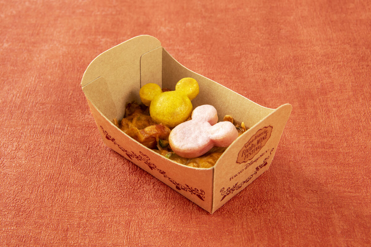 フードトラックで提供される「東京ディズニーシー・フード&ワイン・フェスティバル」スペシャルメニューニョッキグラタン(チョリソー、キノコ、ピスタチオ)とフルーツワインの紹介でした。
