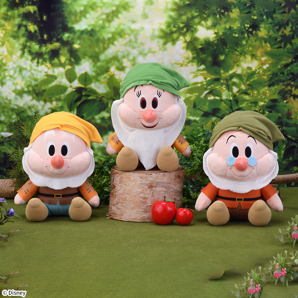 ディズニーアニメーション映画『白雪姫』に登場する、”7人のこびと”たちから「ごきげん」「てれすけ」「先生」のぬいぐるみが登場。