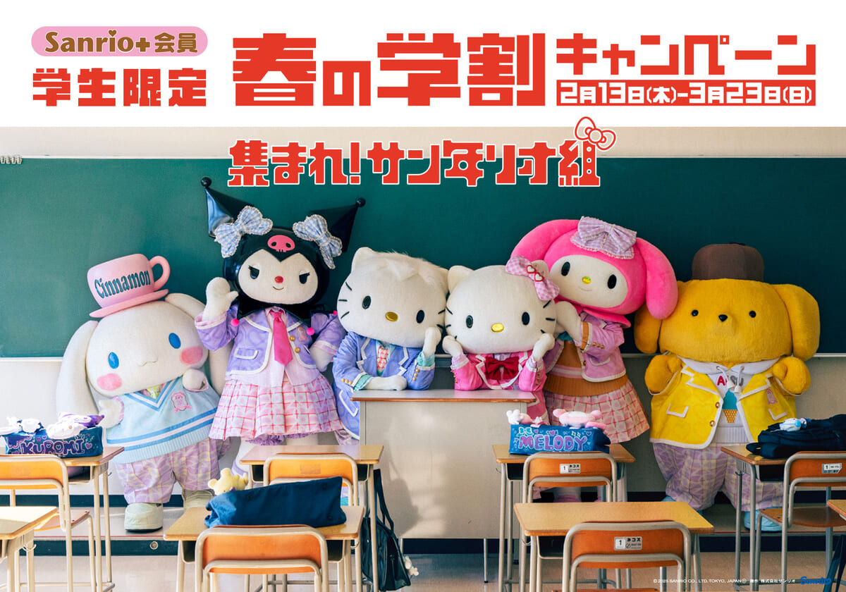 サンリオが、卒業、進級シーズンに合わせて思い出作りをする学生に向け、春のキャンペーン「集まれ!サン年リオ組~春の学割キャンペーン~」を開催!