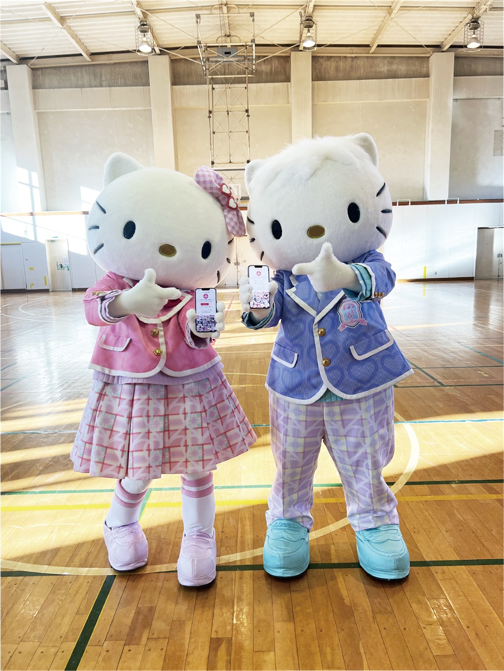 サンリオショップにある「サンリオ春の学割キャンペーン」の二次元コードをスマートフォンのカメラで読み取ると、学生生活を送る制服姿の「ハローキティ」と「ディアダニエル」のオリジナル壁紙がダウンロードできます。