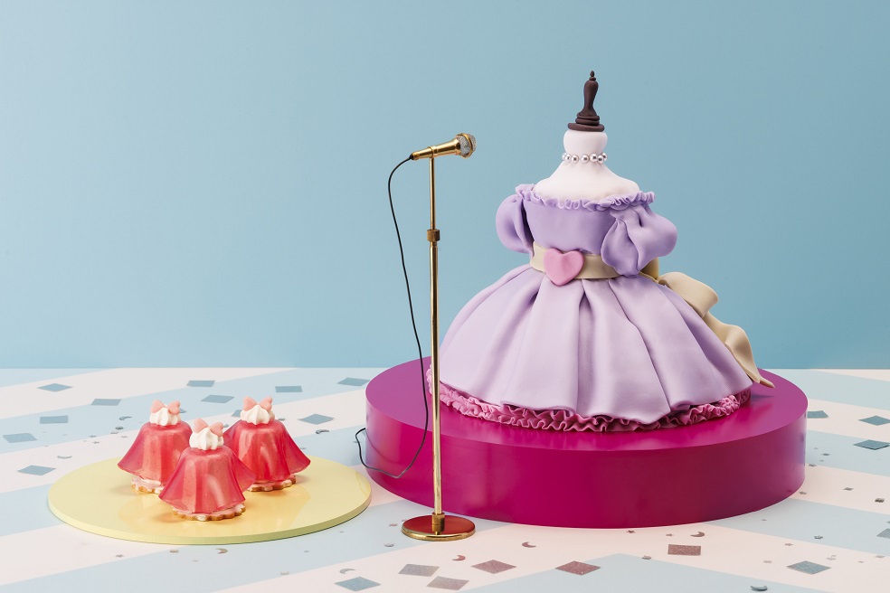 きらめくドレスやハイヒールを模したケーキは、どこか懐かしさを感じさせ、昭和アイドルを彷彿とさせるデザインです。