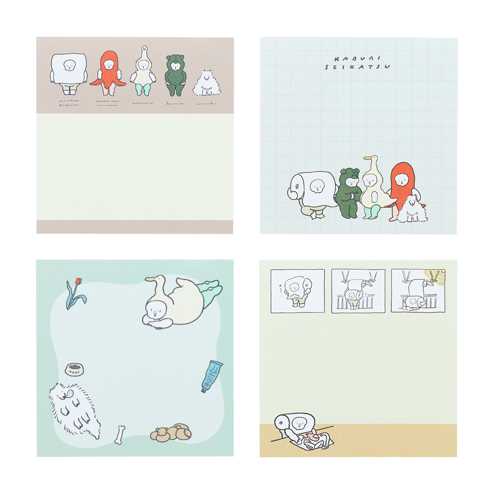 『かぶり生活』のなかまたちをたっぷり描いた、ユーモアあふれるグッズです。