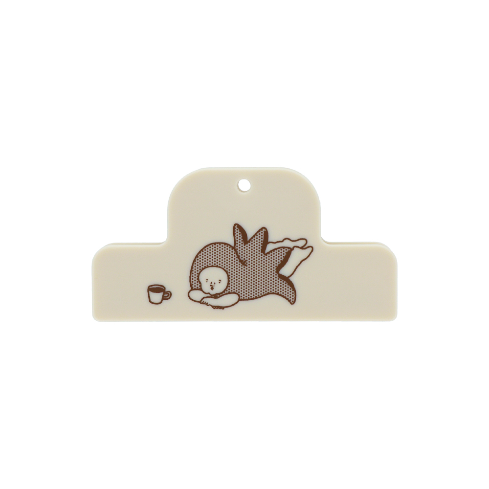 うつ伏せポーズでリラックスする「たこさんウィンナー」デザインのマグネットクリップ。