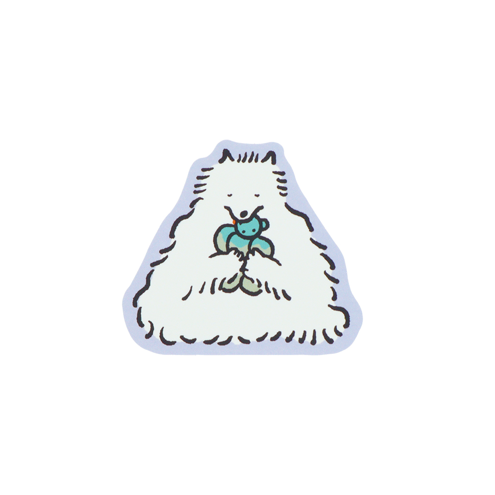 「アヒル」や「くま」「トイレットペーパー」「たこさんウィンナー」たちと共に、サモエド犬の「もうふ」がデザインされています。