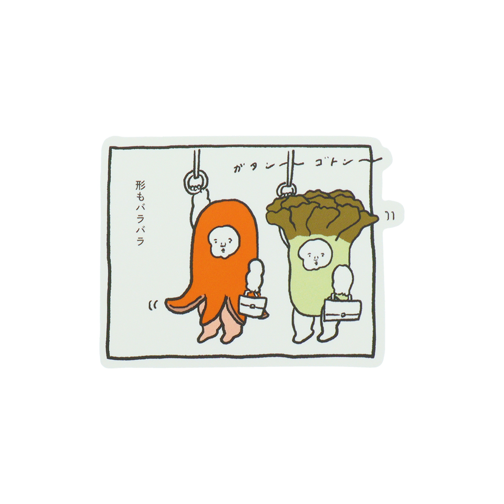 なかまたちの集合デザインや電車の吊革につかまる「たこさんウィンナー」などのシールをアソートした「みんな」