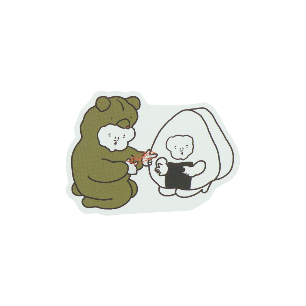 あやとりをする「くま」と「おにぎり」を描いたデザイン。
