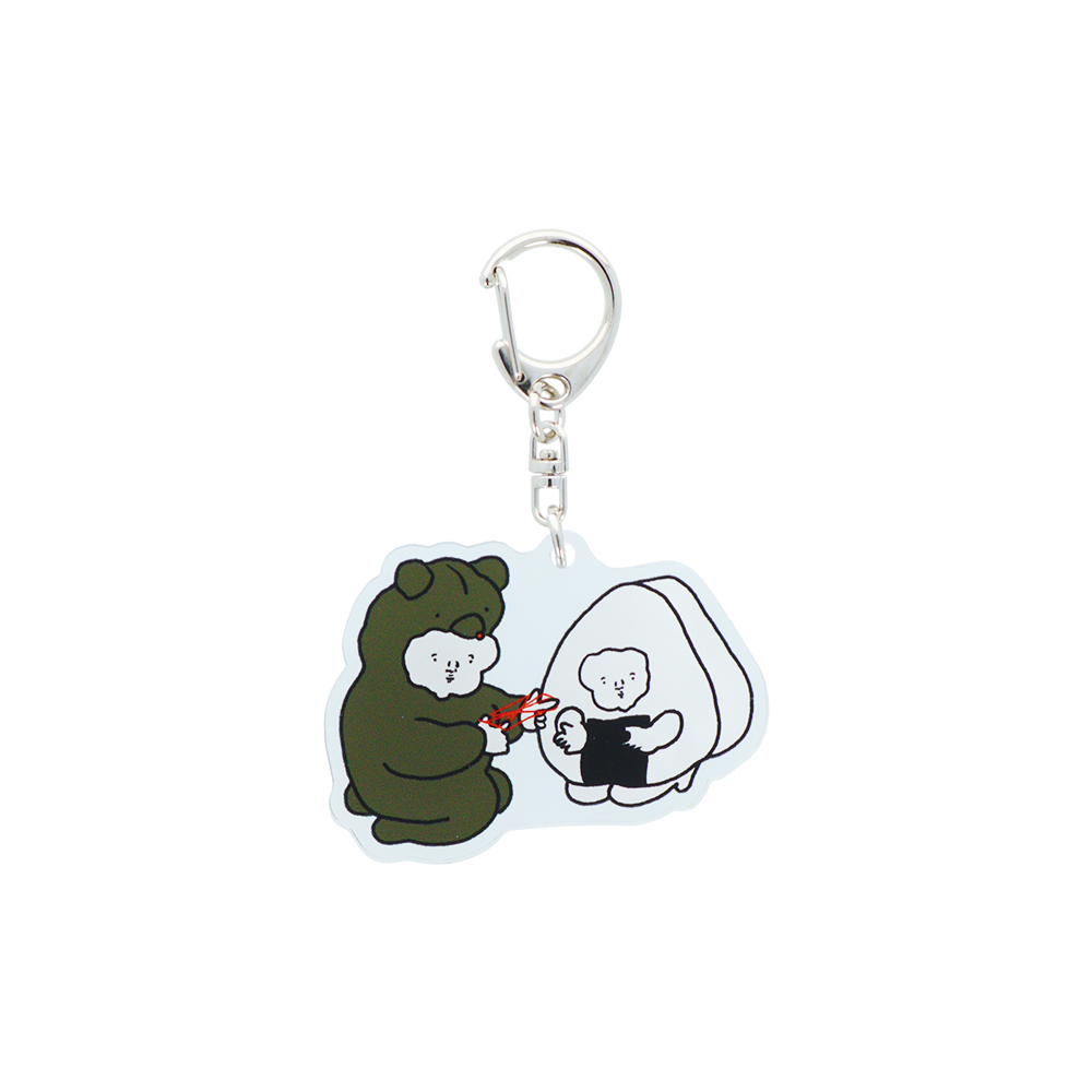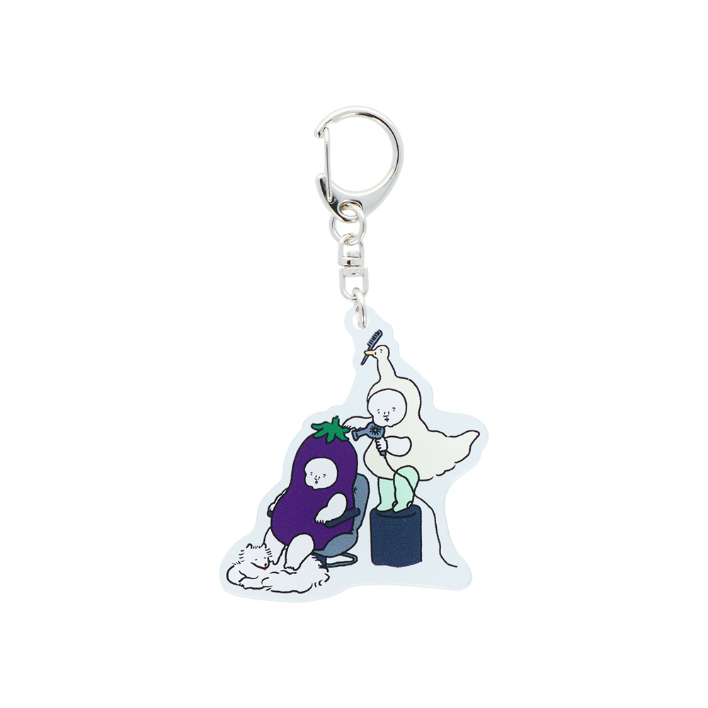 町の憩いの場である「ナガキ美容室」でのワンシーンを落とし込んだアクリルキーホルダー。