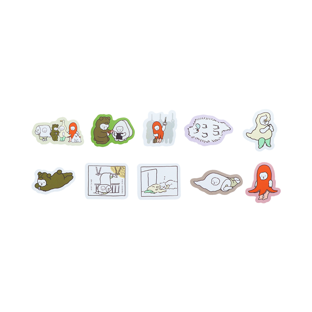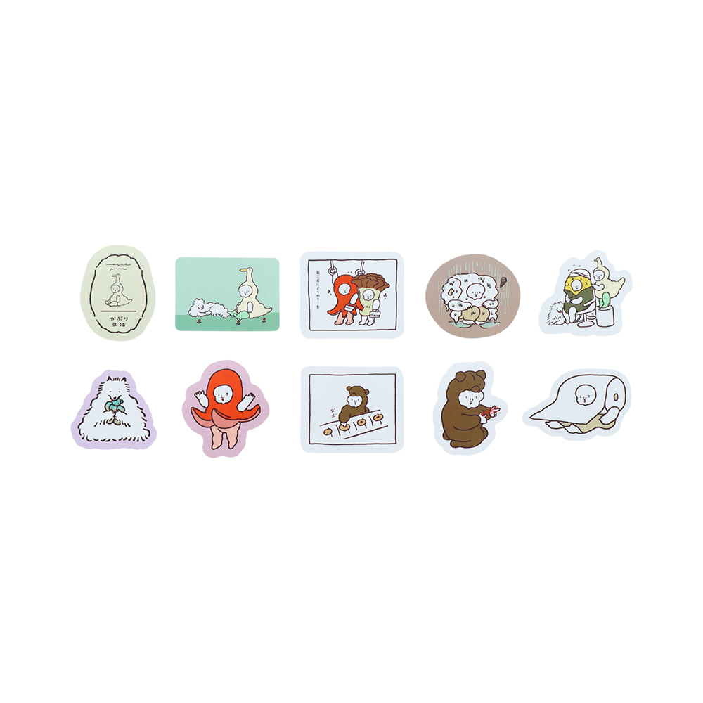 キャラクターのダイカットと日常の1コマがそれぞれデザインされています。