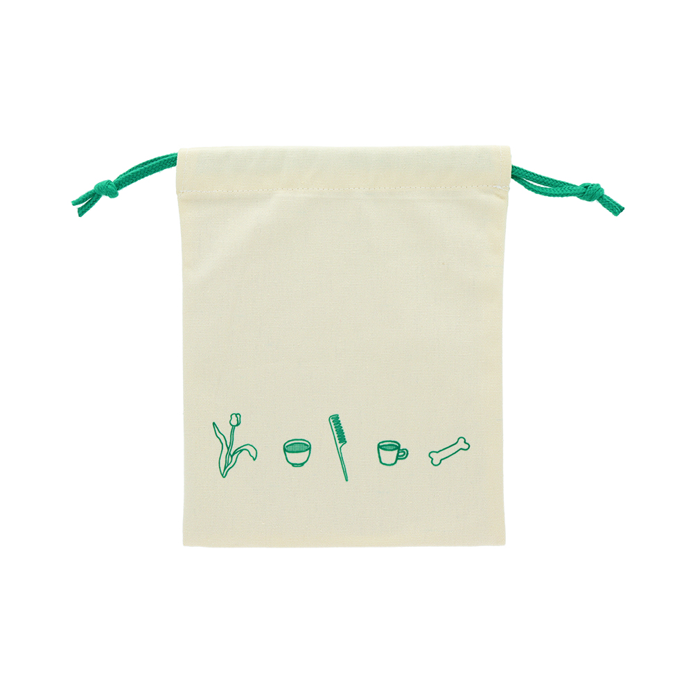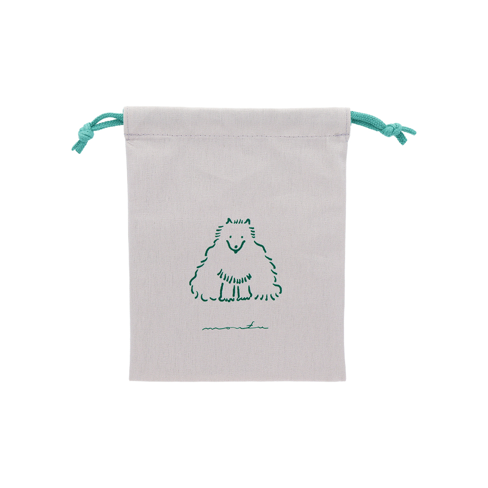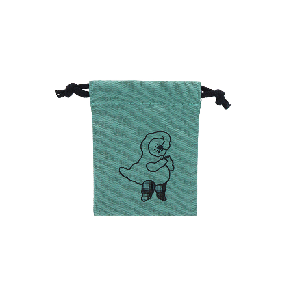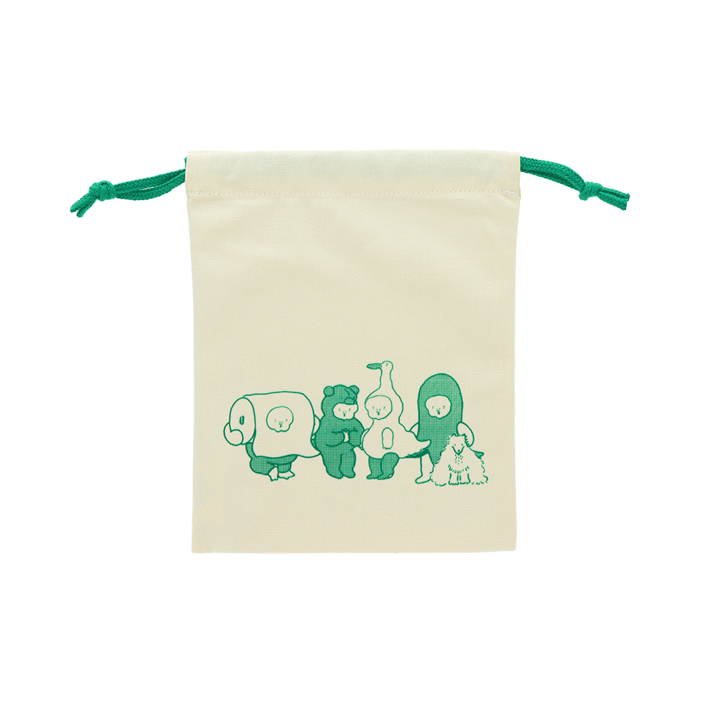 大サイズの巾着には、お座りする「アヒル」と「もうふ」