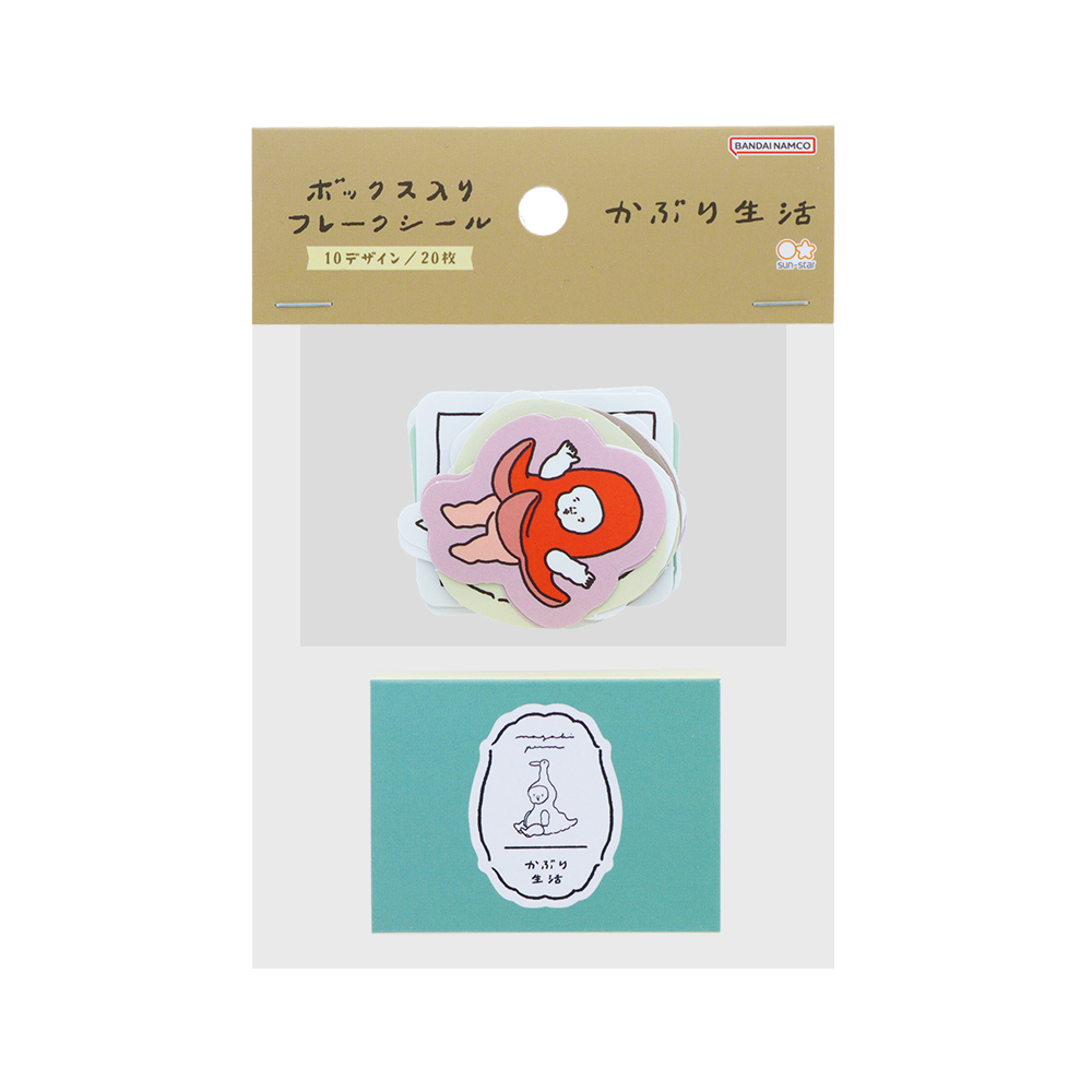 「かぶり生活」のなかまたちをプリントしたフレークシール。