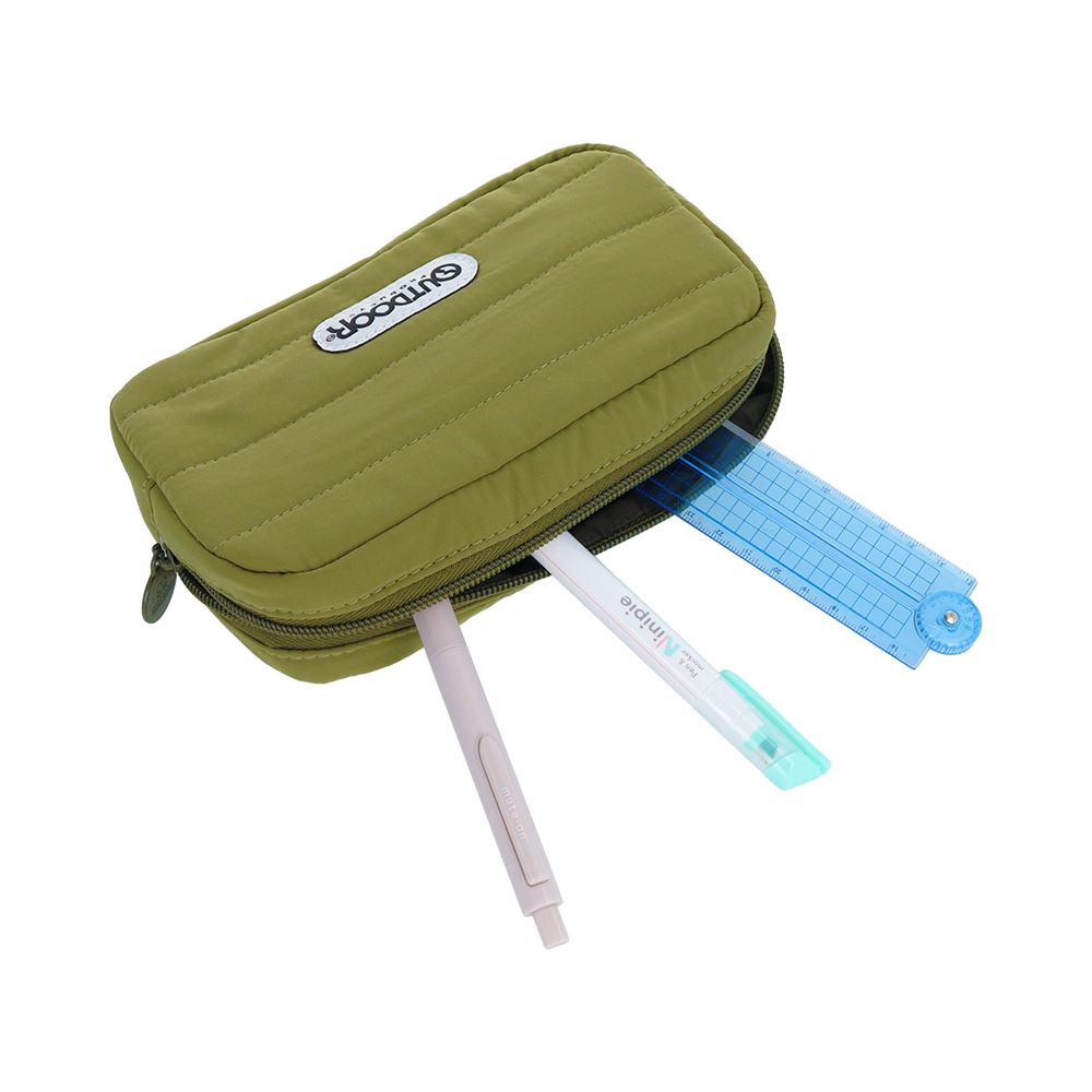 カーキのキルティングペンケースは、ニュアンスカラーが絶妙。