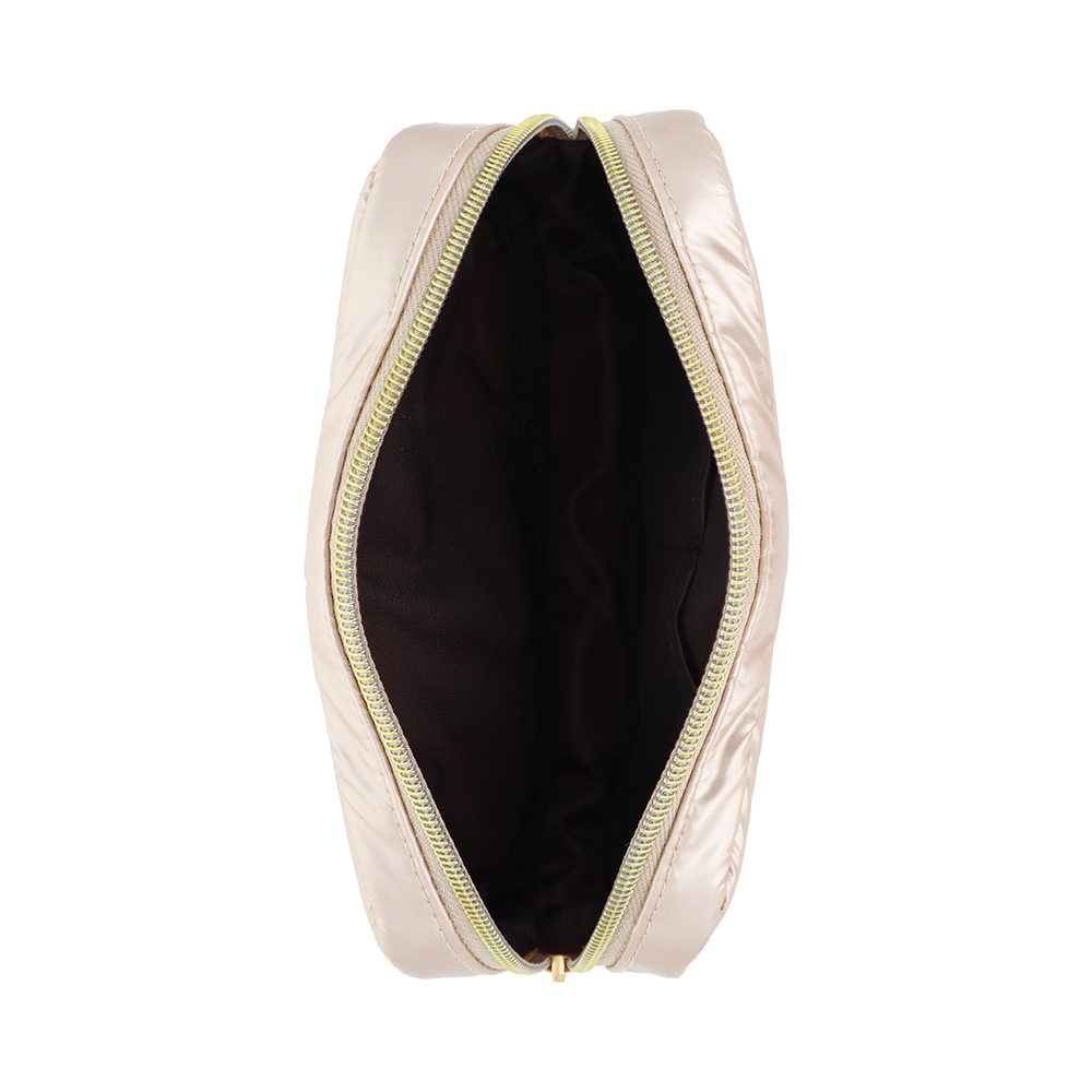 光沢のある生地が高級感ある、ゴールドのペンケース。