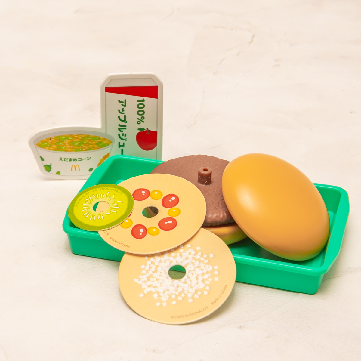 マクドナルドのクルー(アルバイトスタッフ)が使っているアイテムや商品をモチーフにしたおもちゃなど、全8種類がラインナップされます。