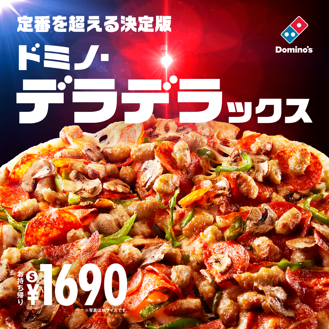 ドミノ・ピザの定番メニュー「ドミノ・デラックス」のトッピングを2倍に増量した決定版のピザ 「ドミノ・デラデラックス」が期間限定で登場!