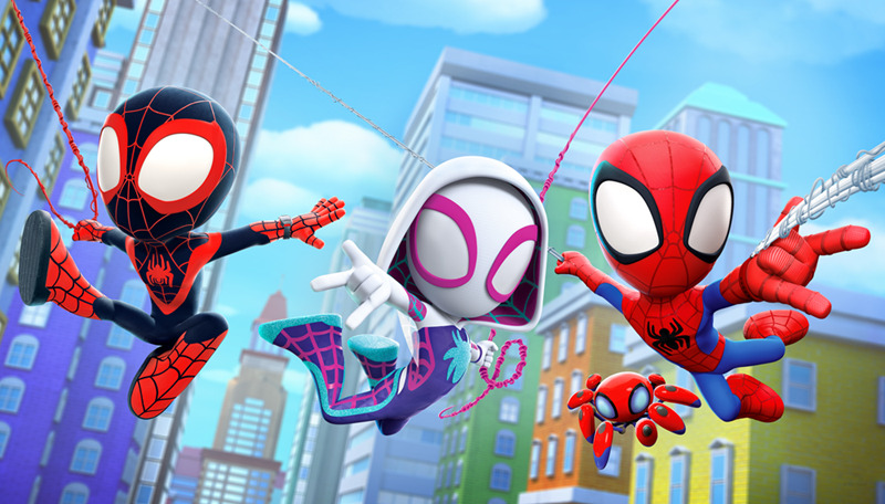 「スパイディ」「ゴースト・スパイダー」「スピン」の3人が、スパイダー・チームを結成し、街の平和を守るため、悪に立ち向かうスパイディたちの活躍を描いた子どもたちにも人気のアニメーション・シリーズです。