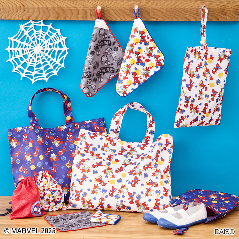 ワッペンからレッスンバッグまで「スパイディ」と学校生活を楽しく過ごせるようなグッズ展開もポイントです。