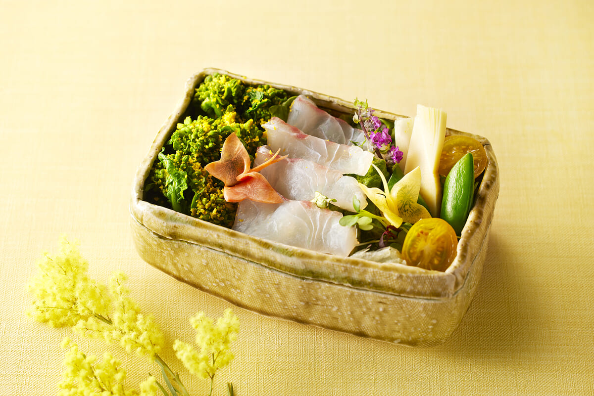 上品な美しい鯛のうす造りや、ほろ苦さと香りで春の訪れを告げる菜の花など、春の食材で仕上げた特別メニューです。