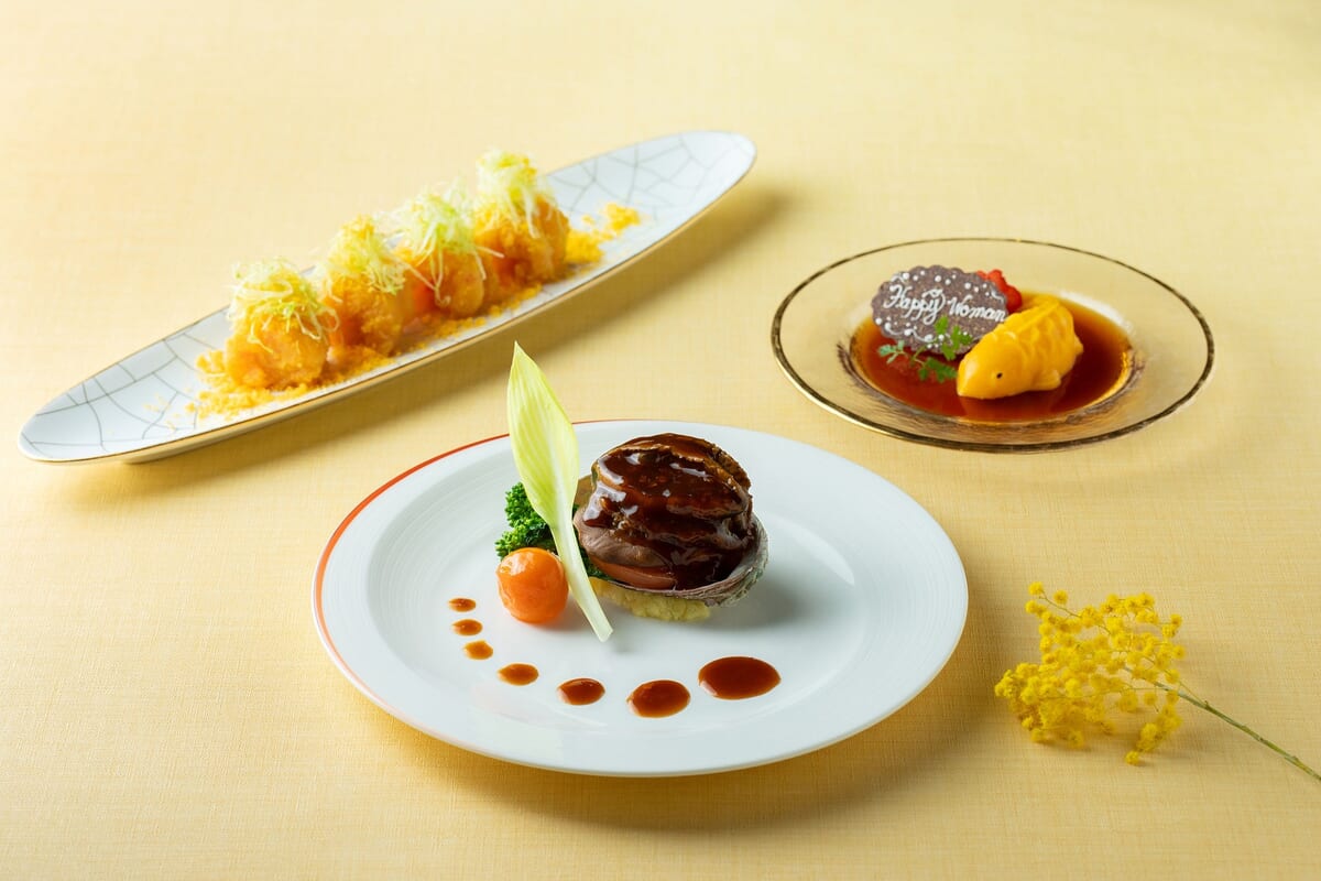 ホテル1階の「ザ・テラス」にあるイノベーションブッフェでは、国際女性デーに合わせて「HAPPY YELLOW」をテーマにした3月限定のスペシャルメニューを用意。