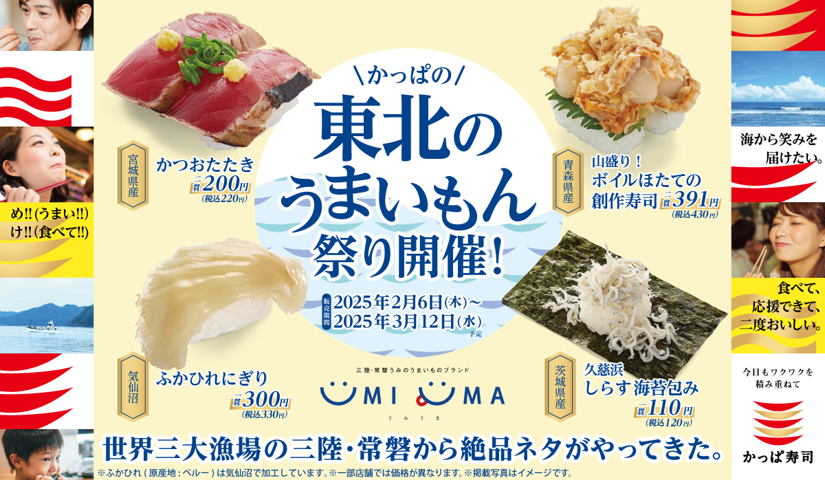 東日本大震災被災地域における水産加工業等の復興を支援する復興水産加工業販路回復促進センターの運営する「東北の海のうまいものが集うサイト“UMIUMA”(https://umiuma.jp/)」とコラボレーションしたフェア「東北のうまいもん祭り」