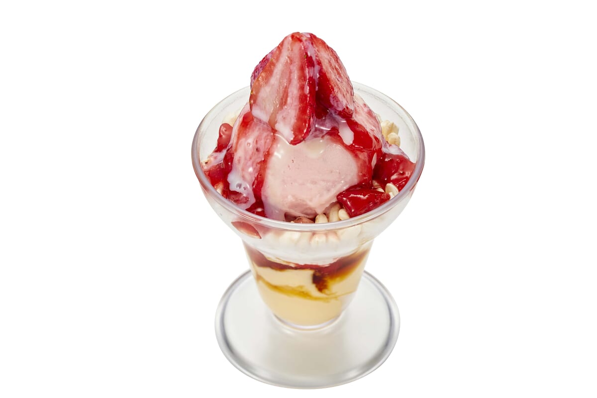 ごちCAFEの新たなメニューとして「ストロベリー満喫!プレミアムプリンパフェ」がラインナップされます。