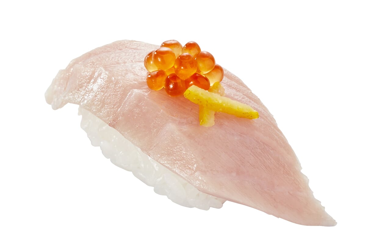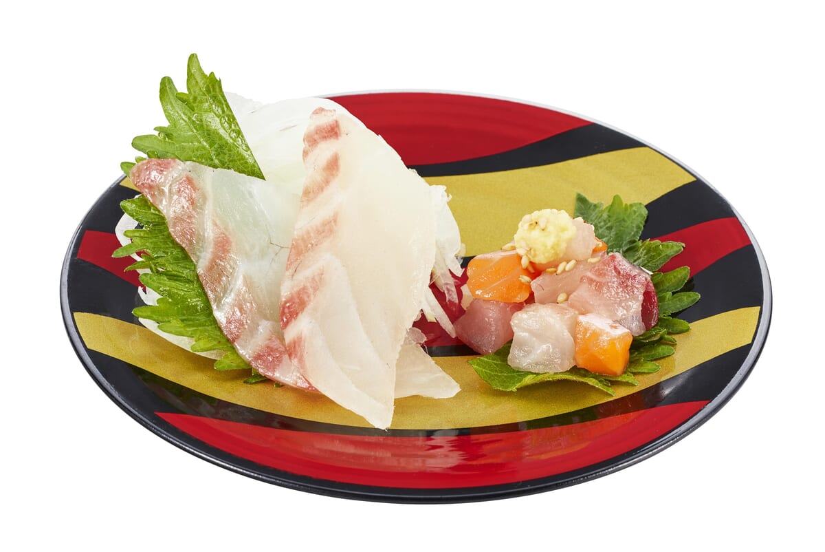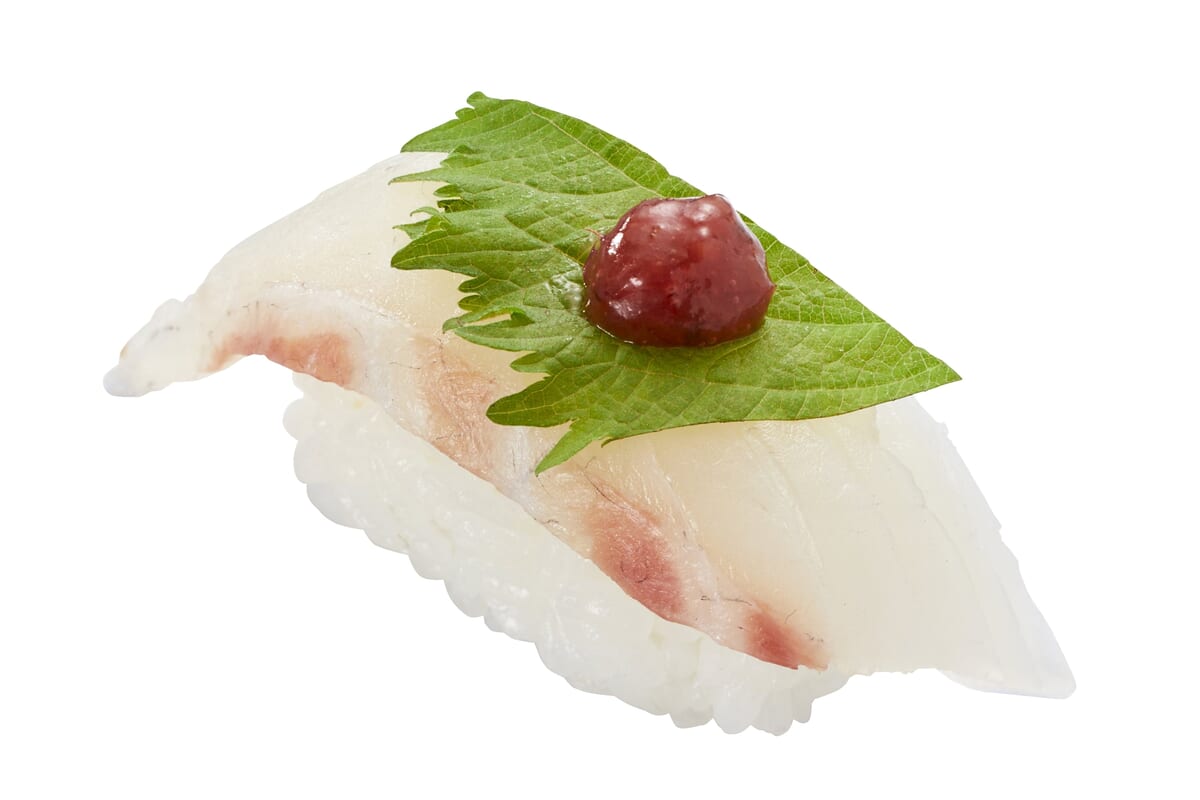 各店舗で切り付けた活〆真鯛を使用した「活〆真鯛 紀州産梅大葉」