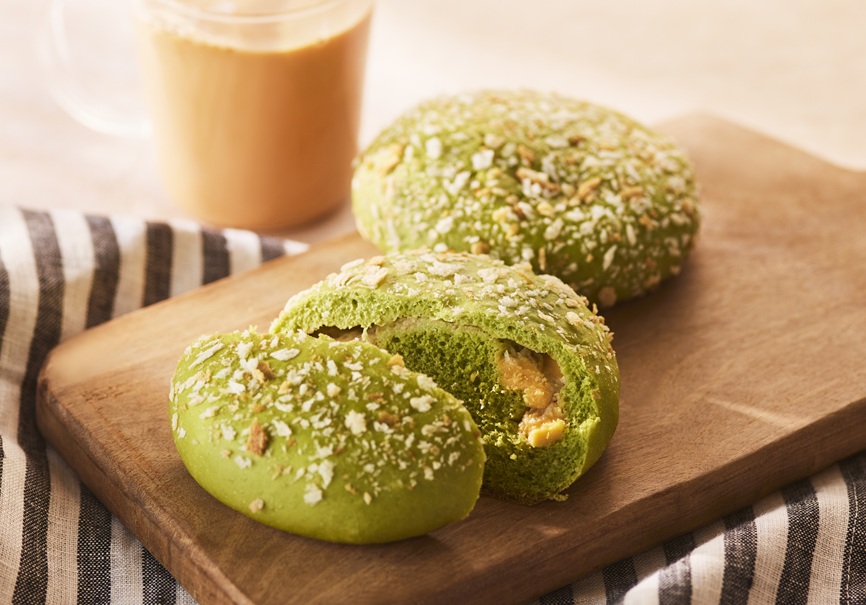 ほうれん草を練りこんだふっくら生地で、ツナとチーズフィリングを包んだ「ほうれん草とツナチーズ」